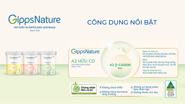 Nhiều mẹ bỉm sữa tại Miền Tây và trên cả nước thường lo lắng khi bé chuyển sang sữa công thức dễ bị đầy hơi, khó tiêu. Sữa GippsNature Organic A2 nổi lên như một giải pháp đột phá. Vậy, điều gì tạo nên sự khác biệt trong Thành Phần Sữa GippsNature Organic A2 khiến nó được mệnh danh là dòng sữa "gần gũi với sữa mẹ" và dễ tiêu hóa nhất?