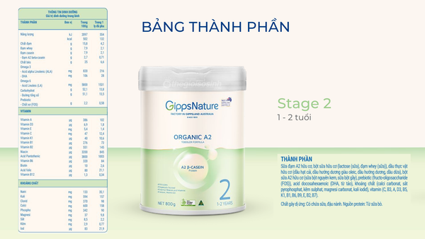 - Tăng cường đề kháng: Thành phần sữa GippsNature cung cấp các Vitamin và Khoáng chất thiết yếu, giúp bé tăng sức đề kháng trong giai đoạn này.