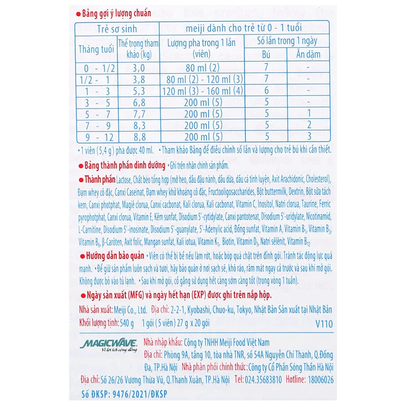 - Dinh dưỡng toàn diện: Sữa Meiji Thanh 0-1Y bổ sung đến 42 dưỡng chất bao gồm đầy đủ các vitamin và khoáng chất. Sản phẩm chứa DHA, ARA, FOS và các vitamin, khoáng chất thiết yếu.
