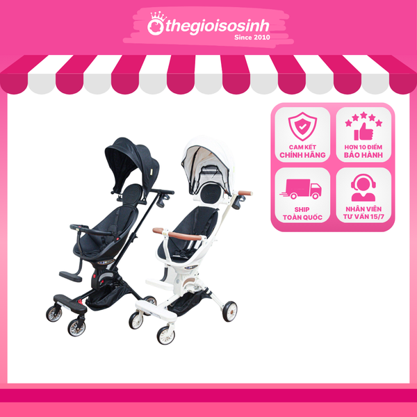 Ghế ngồi rộng rãi, có thể ngồi – nằm – ngả nhiều tư thế, mang lại sự thoải mái tối đa cho bé trong mọi hành trình. Mái che lớn giúp bảo vệ bé khỏi ánh nắng, gió và bụi bẩn khi ra ngoài.